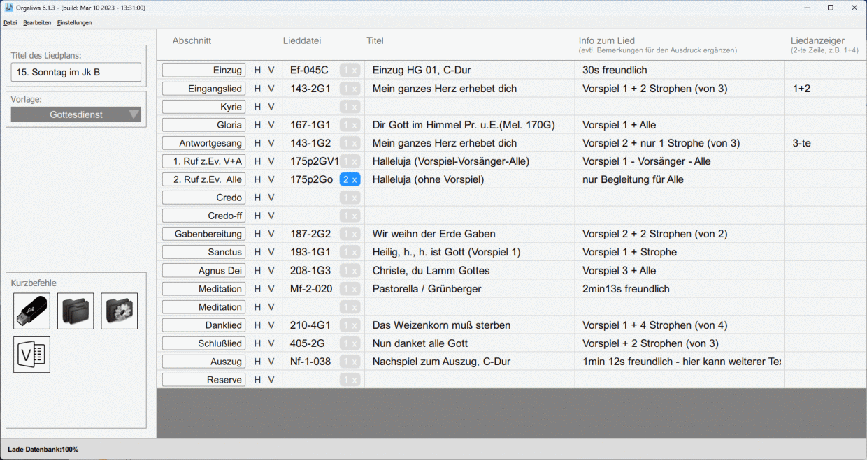 There are several kinds of song-sheets, where you find up to 30 positions. The text of the positions can be changed.